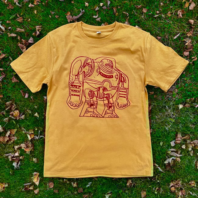 Printed Red on Mango tees. As stock levels fluctuate shirts will be subbed for a similar Colour, or sizes might be capped altogether.