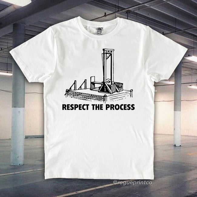 Printed Black on off white or white tees. As stock levels fluctuate shirts will be subbed for a similar Colour, or sizes might be capped altogether.