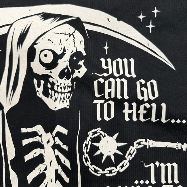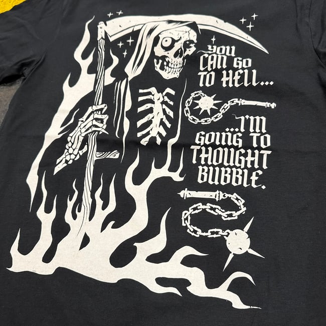 Printed White on Black tees. As stock levels fluctuate shirts will be subbed for a similar Colour, or sizes might be capped altogether.